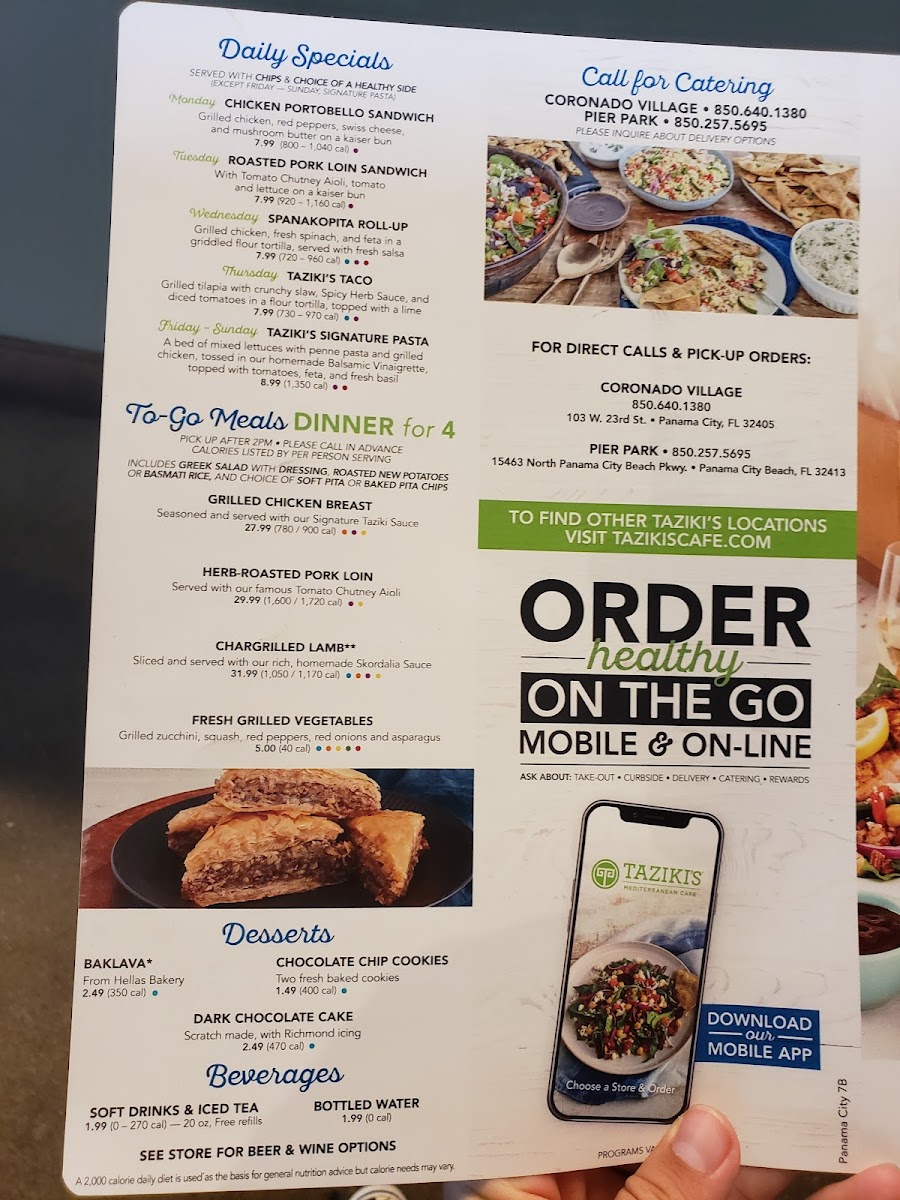 Welcome to Taziki's Mediterranean Cafe in Panama City Beach, where the vibrant flavors of the Mediterranean await! Nestled at 15463 Panama City Beach Pkwy Ste B, this cafe promises a delightful dining experience backed by rave reviews. The core menu shines with an array of options, from the comforting Grilled Cheese Pita to the savory Chargrilled Lamb served with their signature Taziki's sauce.
